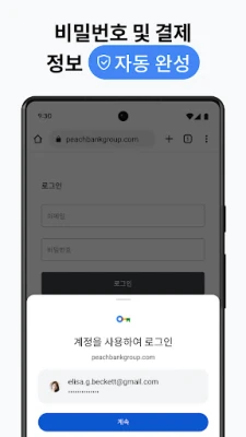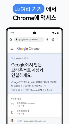 어떤 기기를 사용하든, Chrome은 당신의 웹 경험을 끊김 없이 이어줍니다. 휴대전화, 컴퓨터, 태블릿 등 모든 기기에서 Chrome에 로그인하는 순간, 즐겨찾기, 열린 탭, 저장된 비밀번호 등이 완벽하게 동기화되어 언제 어디서든 마지막 순간부터 다시 시작할 수 있습니다. 탭 그룹 기능을 활용하여 수많은 탭 속에서도 질서를 유지하고, 여러 기기에서 체계적인 브라우징 환경을 경험하세요. 저장된 결제 정보, 주소, 비밀번호를 자동으로 채워주는 자동 완성 기능으로 반복적인 입력 시간을 절약하고 더욱 빠르고 편리하게 웹을 이용할 수 있습니다.