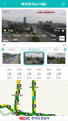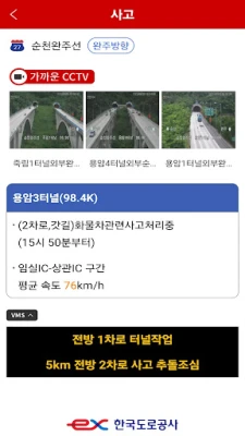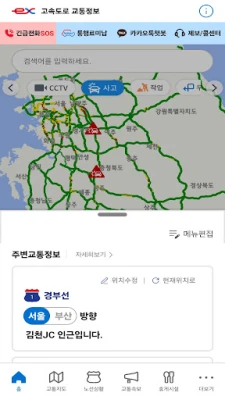 고속도로 교통정보 앱은 전국 고속도로의 실시간 소통 상황, CCTV 영상, 사고 정보, 휴게소·충전소 위치 등 모든 교통 정보를 한눈에 제공합니다. 정체, 사고, 작업 등 교통 속보와 고속도로 이용에 필요한 공지사항도 확인할 수 있습니다.