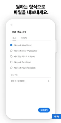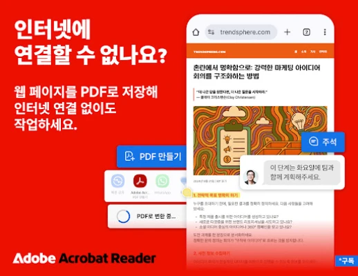 일상적인 문서 작업 또한 Adobe Acrobat Reader와 함께라면 더욱 편리해집니다. 무료로 제공되는 강력한 Fill & Sign 도구로 양식 작성과 서명을 손쉽게 완료하고 즉시 공유할 수 있습니다. '리퀴드 모드'는 최적화된 가독성으로 어떤 기기에서든 편안하게 문서를 읽을 수 있도록 돕고, 간편한 주석 달기 기능으로 중요한 내용을 놓치지 않게 합니다. 또한, Google Drive, Microsoft OneDrive, Dropbox 등 주요 클라우드 서비스와의 연동을 통해 언제나 필요한 파일에 접근하고 관리할 수 있으며, 이동 중에도 PDF 내용을 들을 수 있는 음성 듣기 기능으로 활용도를 높였습니다. Adobe Acrobat Reader는 모든 사용자를 위한 포괄적인 문서 경험을 제공합니다.