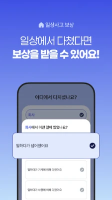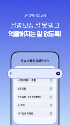 보험 청구는 항상 복잡하고 어렵게만 느껴지셨나요? 이 앱은 복잡한 보험 보상 과정을 명확하고 쉽게 안내하여, 여러분이 어려움 없이 정당한 보상을 효율적으로 받을 수 있도록 돕습니다. 헷갈리는 서류 작업이나 까다로운 절차로 더 이상 고민하지 마세요. 믿을 수 있는 안내로 편안하게 보상을 받아보세요.