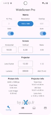 WideScreen Pro는 다양한 화면 크기와 비디오 프로젝터의 해상도에 완벽하게 맞춰 파노라마 이미지의 최적화된 크기를 정확하게 계산하는 전문 도구입니다. 복잡한 수작업 없이 완벽한 비율의 이미지를 손쉽게 구현하여 모든 시청자에게 몰입감 넘치는 최고의 시각적 경험을 선사합니다.