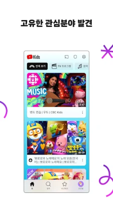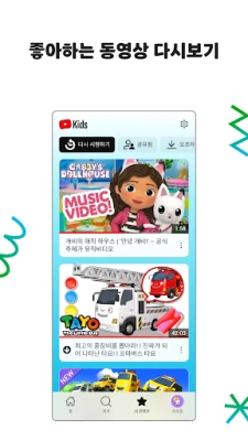 YouTube Kids는 각 아이의 빛나는 개성을 존중하며, 맞춤형 시청 경험을 제공합니다. 연령별 프로필 설정을 통해 우리 아이에게 꼭 맞는 흥미로운 콘텐츠를 추천받으세요. 첫걸음을 떼는 유아는 재미있는 학습 활동으로 알파벳과 숫자를 익히고, 미취학 또는 저학년 아동은 신나는 노래, 애니메이션, 창의적인 공예 영상으로 관심사를 넓힐 수 있습니다. 고학년 아동에게는 최신 음악 트렌드나 인기 게임 동영상을 탐색할 자유를 선물하고, 부모님은 '승인된 콘텐츠 전용' 모드를 통해 자녀가 시청할 영상, 채널, 컬렉션을 직접 선택하여 완벽한 맞춤 환경을 조성할 수 있습니다. 소중한 추억이 담긴 '다시 보기' 탭에서는 아이가 좋아하는 영상과 보호자가 공유한 콘텐츠를 손쉽게 찾아 다시 감상할 수 있습니다.